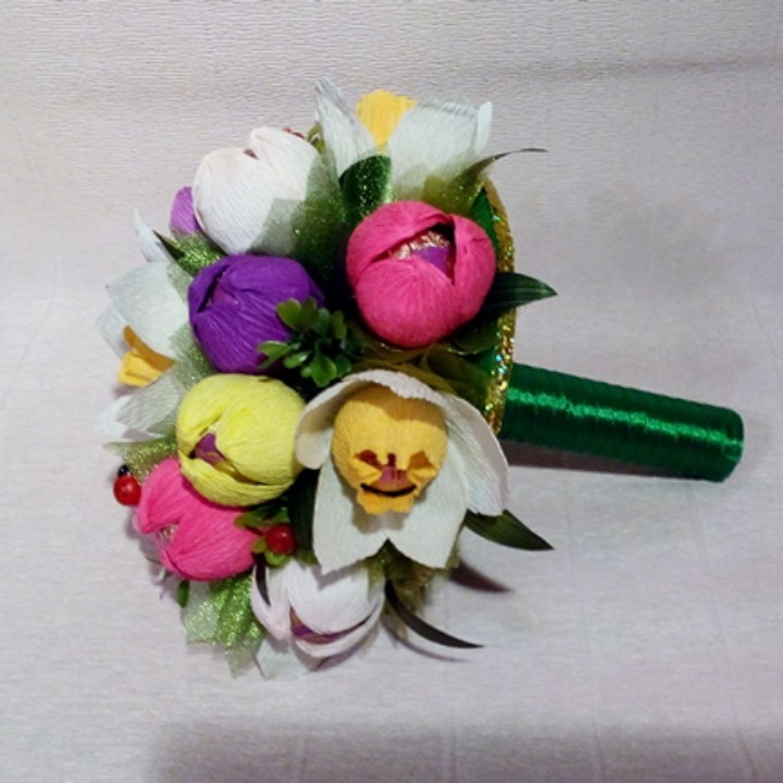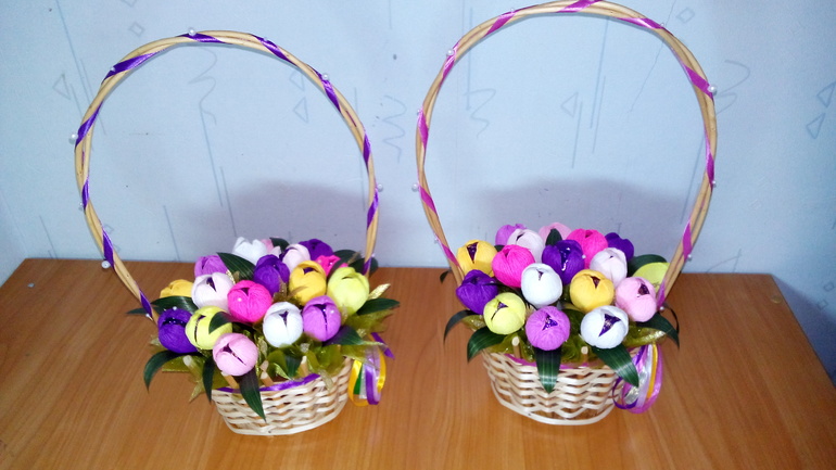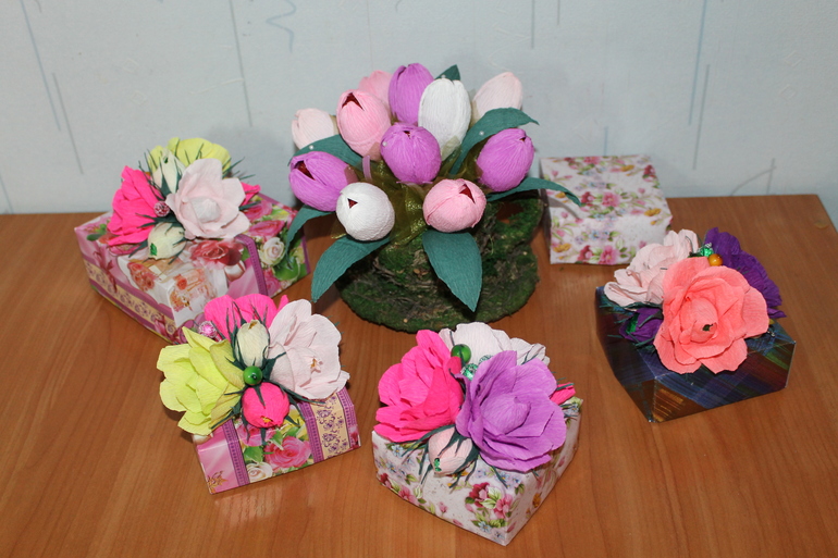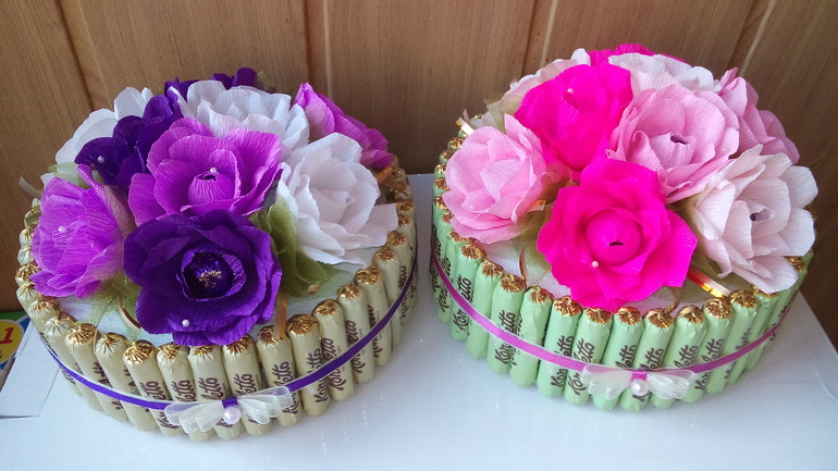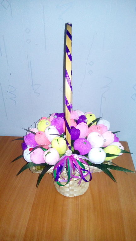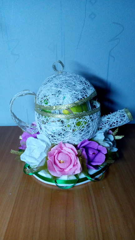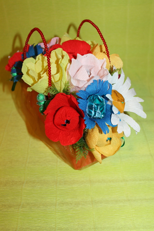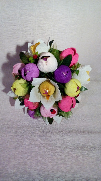 Спасибо,очень приятно, что кому-то нравится.многие долго не разрушают букетики,стоят для красоты,приходится заставлять конфетки вытащить ,чтоб не пропали :)))