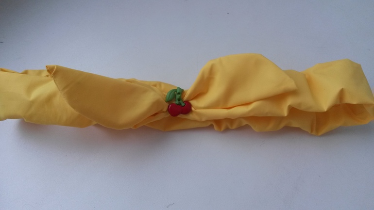 На голове сидит без складочек ровной полосой. Концы можно пригладить а можно сделать торчащими)