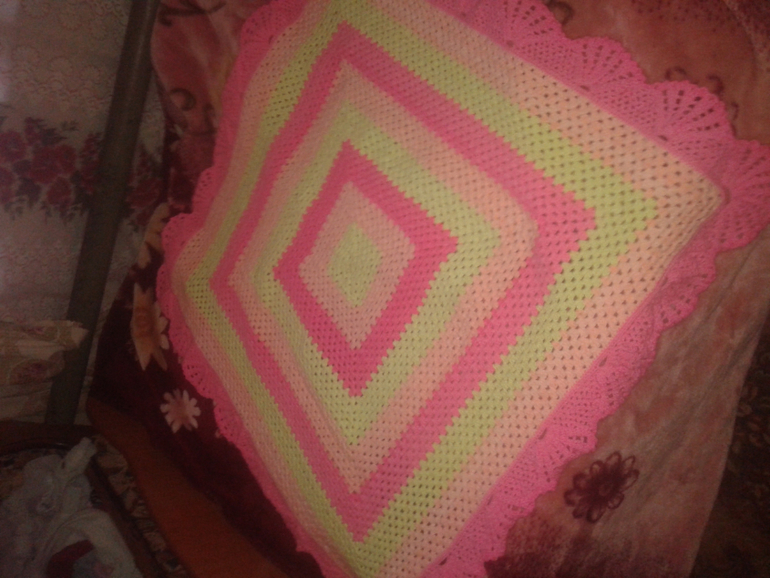 Всем приветик) Выкладываю Вам на суд свою работу))Плед связан давно и давно подарен законной владелице)))Извиняюсь за качество фото и я немного назихирила с обвязкой))) и цвета в реале немного ярче)))критика приветствуется) А вот и плед)
