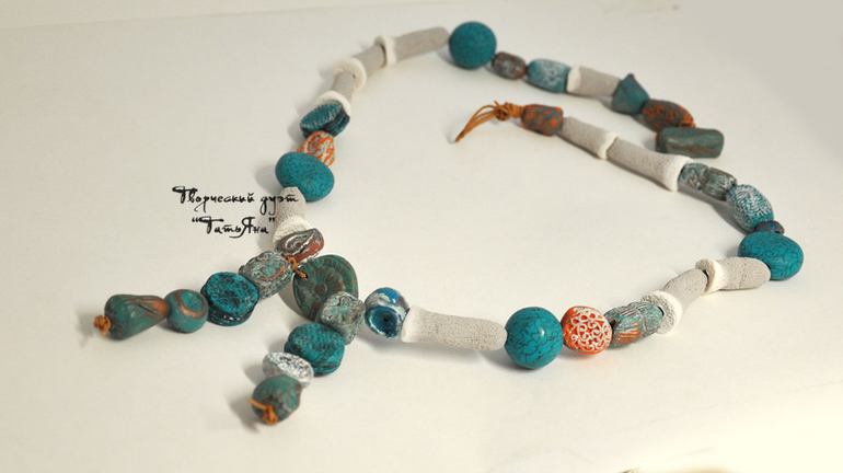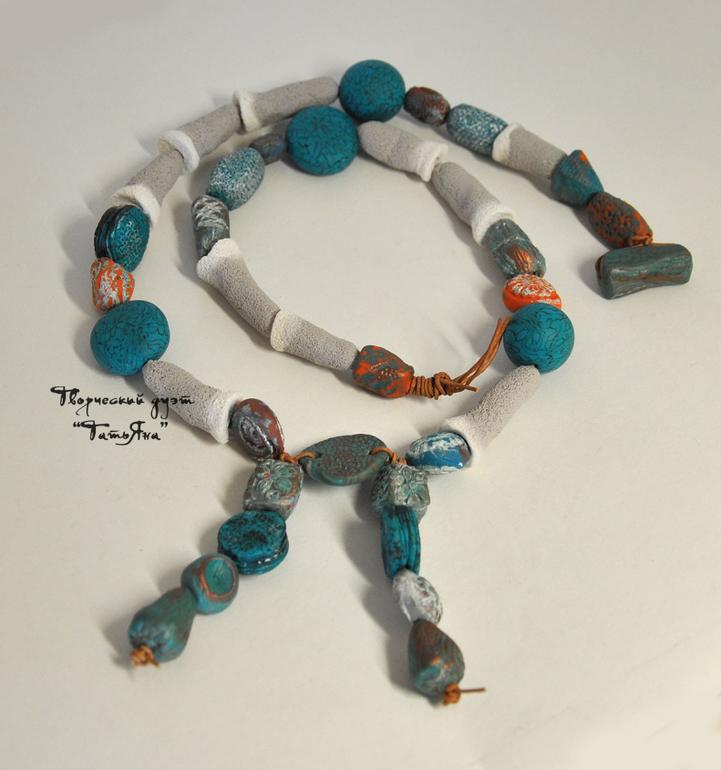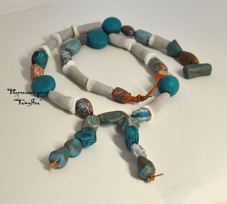 Полимерная глина. Кожаный шнур, акриловые краски.