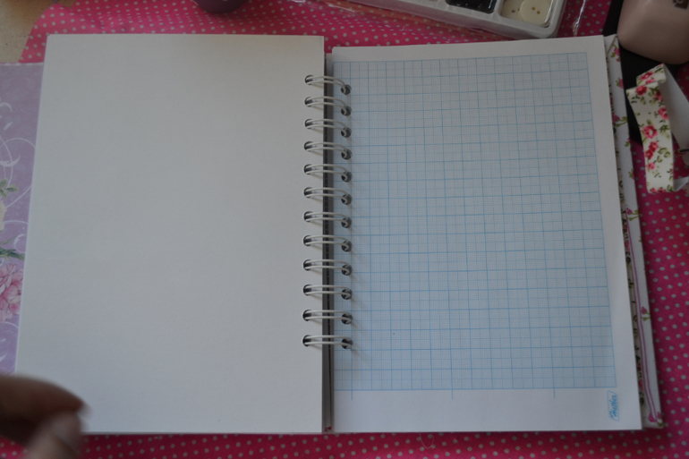 в блокноте- есть листочки- для заказоп- просто линовка- и миллиметровка для эскизов