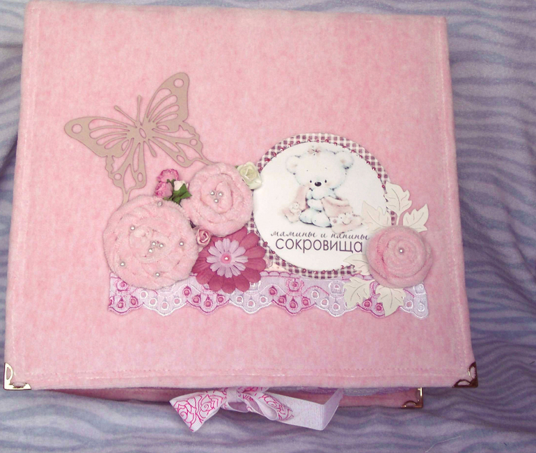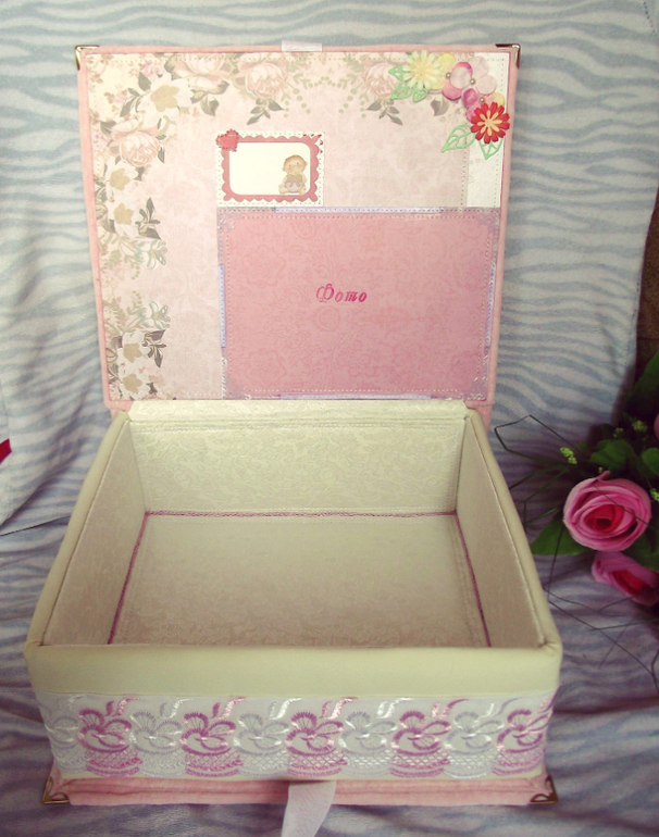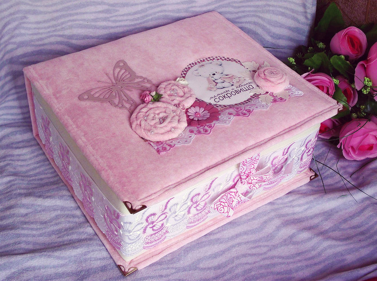 СкрапбукингЗдравствуйте! Сегодня я опять со шкатулкой - сокровищницей. Обтянута велюром, очень мягенькая и приятная, проложена синтепоном, внутри тоже ткань. Размер 30*25.