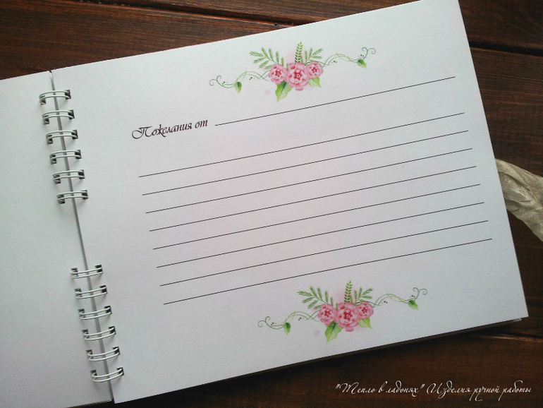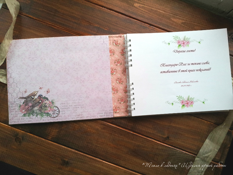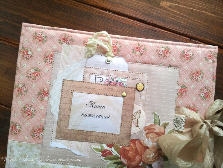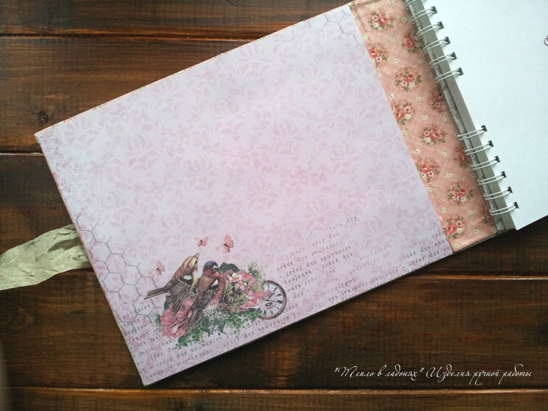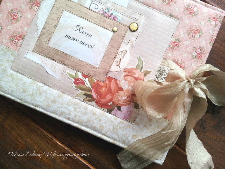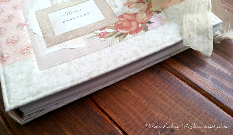 Размер примерно 21х26 см, обложка обтянута хлопком, завязывается на ленту.