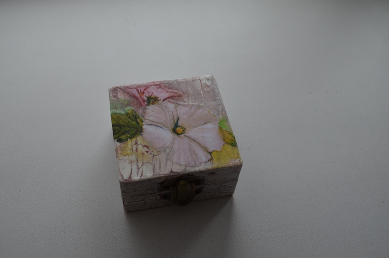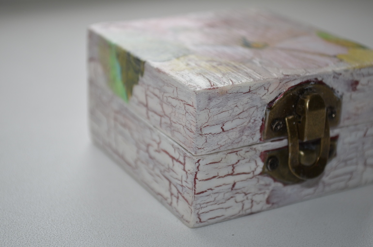 Первый кракелюр, первая работа с фоном. В общем жду ваших советов, конструктивной критики и если есть за что похвалить - похвалите:) Проблемы с которыми столкнулась: матовый лак, но все равно дает блеск и очень быстро высыхает - оставляя не ровную поверхность, а полосы. как с этим бороться? фурнитуру скручиваем до окончания работы?