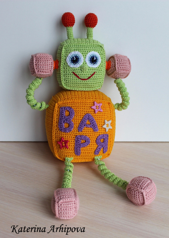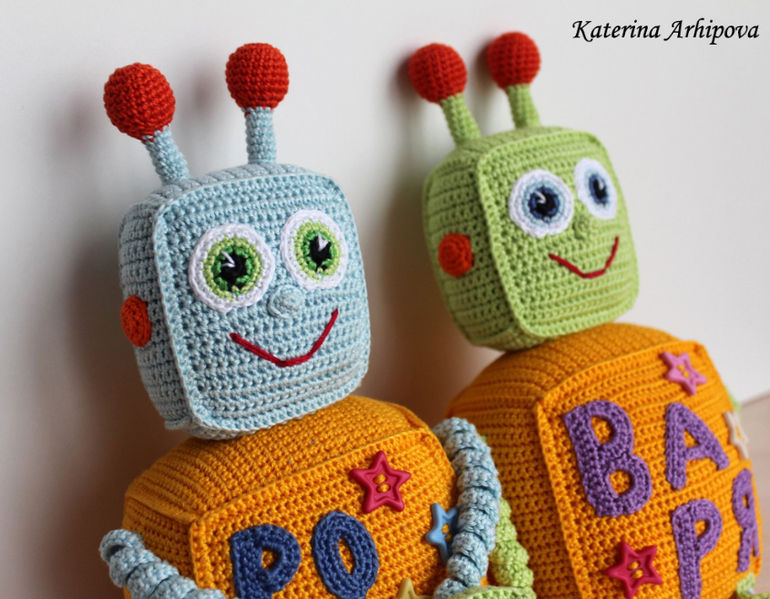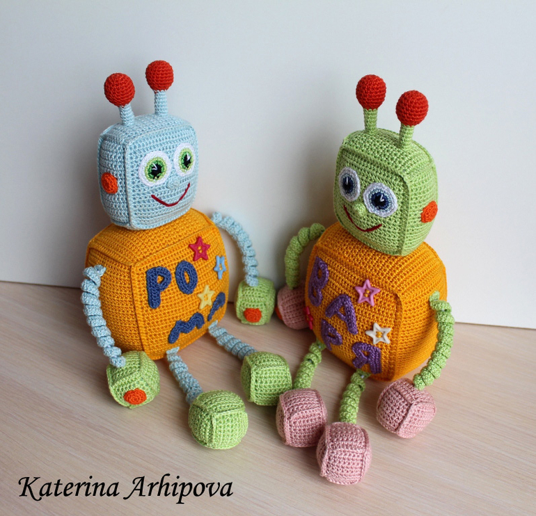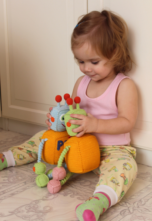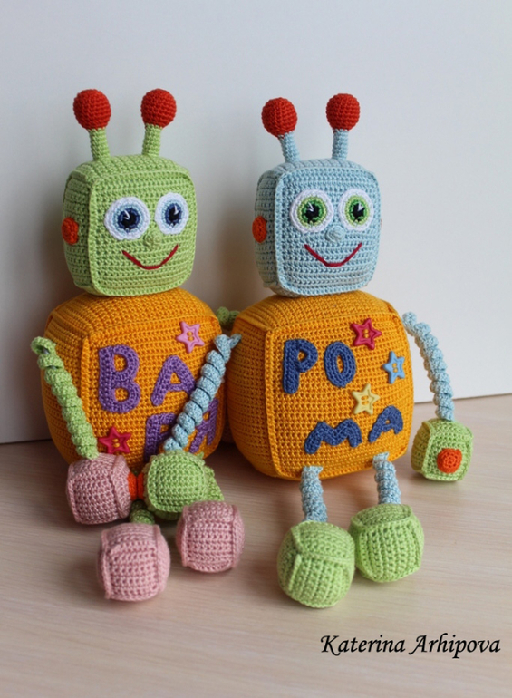 Этих малышей вязала для своих малышей,выпросили.В ручках и ушках магниты,лапки на резиночках.Просил себе робота сын,но больше их любит доча))))