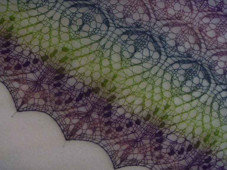 Мое знакомство с кауни...связала маме шальку "Цветочное эхо" из кауни "Африка", вот она...во всей красе...на блокировке...на хозяйке пока не смогла сфотографировать: