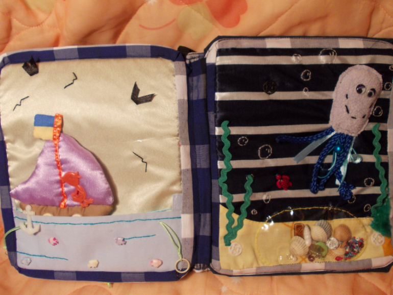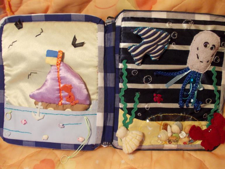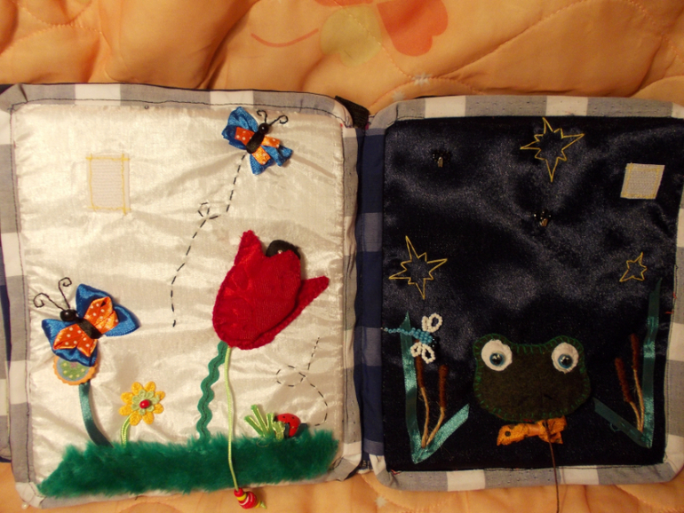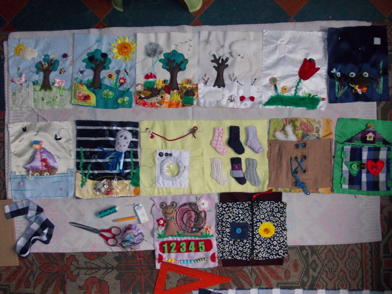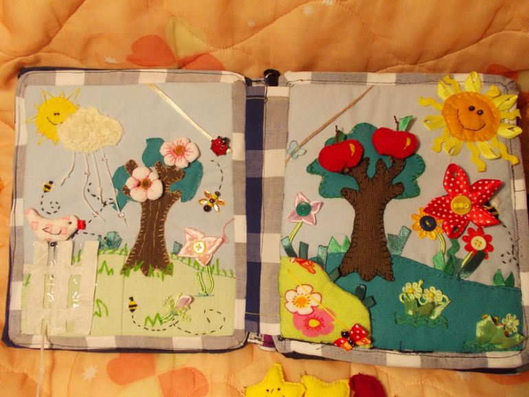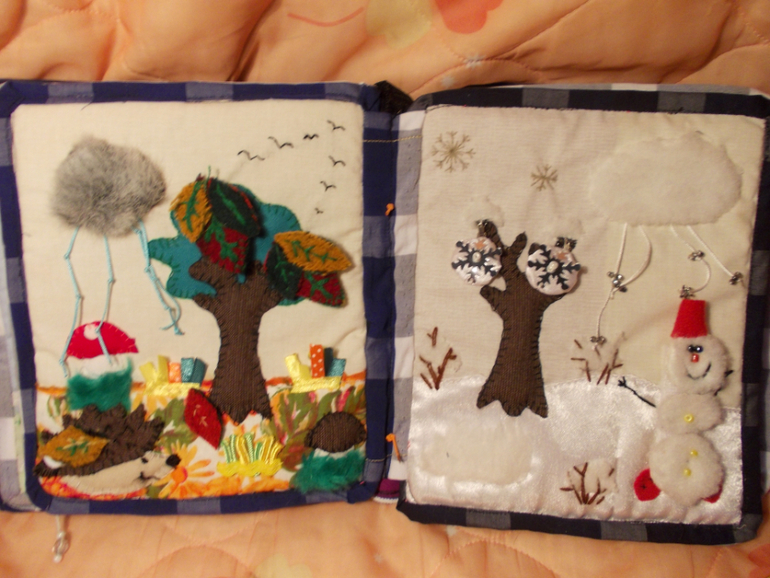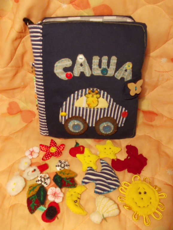 Вот насмотрелась на развивающие книжечки в инете, вот и решила сынуле сделать одну, как раз и для примера будет, подумала я... Но хочется же охватить как можно тем и уместить все в одной книжечке, к тому же она шьется не один день... Вот и начала шить - страничка за страничкой... И тут дело дошло до "собирания" страничек в книжечку... И тут оказалось, что выходит уж больно боольшая книжечка и не удобная. Так что из одной книжечки вышло две