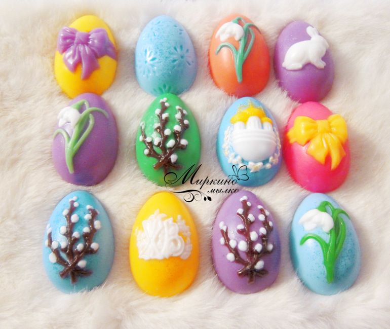 Мыло и косметика своими рукамиМоя мама родилась 12 апреля, в день космонавтики. К маме на день рождения всегда приезжают ее подруги/одноклассницы, с которыми она знакома с яслей. Их невероятной дружбе уже более 60 лет. Сколько я себя помню ни одно мамино день рождение не проходило без их участия. С тех пор как я увлеклась мыловарением, появилась еще одна маленькая традиция, я привожу мыльные подарки для маминых гостей. И так как в этом году ее день рождения совпал с чудесным праздником - Пасхой, то подарки получились тематические, пасхальные. Под срезом много фото