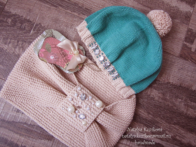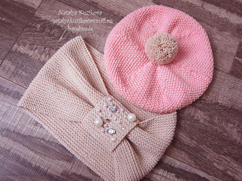 Беретик со стразами и снуд
