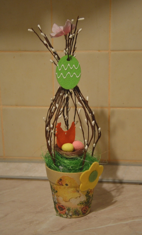 Поделки с детками.Всем Здравствуйте! Решила показать поделку которую мы с дочкой сделали вчера. Может кому-то пригодиться идея. Ребенок вставлял веточки, клеил петушка, яички. Извините за качество фото, было темно, а утром надо было нести в сад.