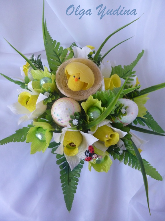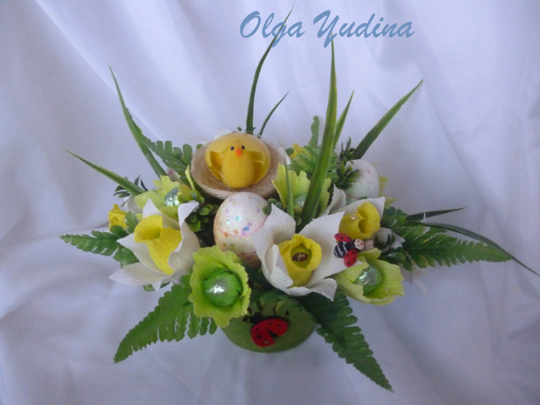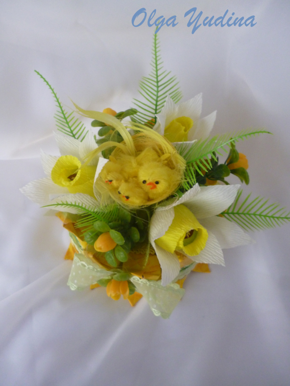 И к Пасхе мини-тортик и композиция в кашпо (ребенку в сад на выставку):