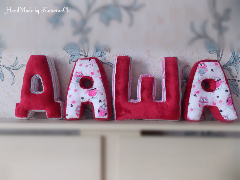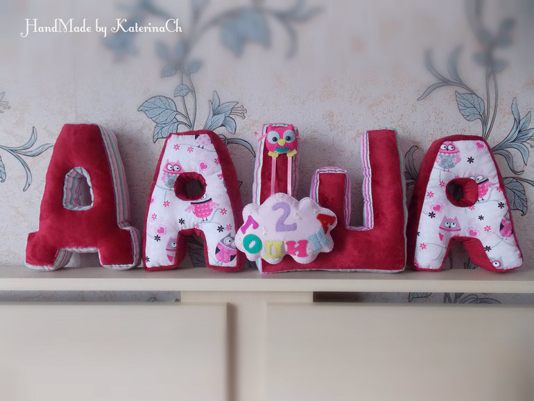 . У Дашульки скоро День Рождения!!! Ей исполнится 2 годика! И вот для неё сшилось такое мягкое имя в тематике её нового диванчика и детской. А ещё праздничное панно из фетра)))