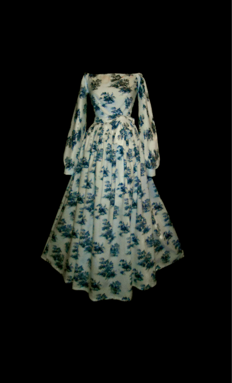 Платье прованс белое с темно темно синем рисунком.