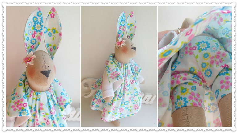 Весенняя зайка. шита вот вчера буквально. Может сошью ей еще гуся какого-нибудь) Еще не придумала)