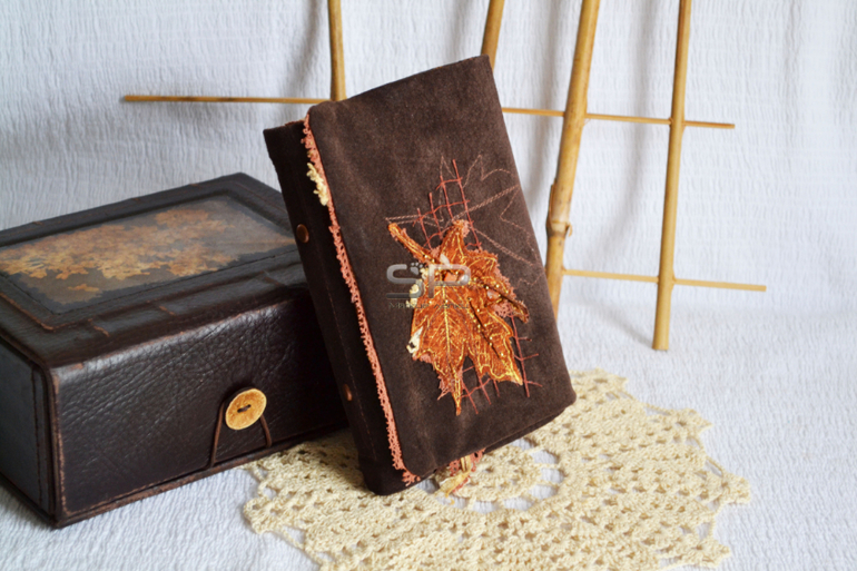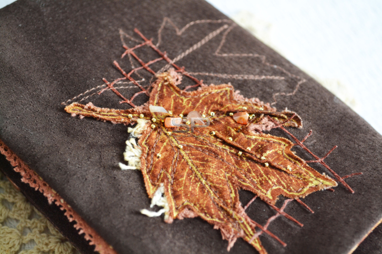СкрапбукингУ всех нормальных людей весна, а у меня осень)) Появился на свет вот такой софтбук, из тонкой замши, всего 0,6 мм, нежнейшая, листики приятно шелестят, тонкие-тонкие, тонированы чаем, очень красивый цвет, мне он нравится больше, чем кофе))) ароматизирован мешочком с корицей и мятой, есть кармашек и петелька для карандаша. На обложке вышивка в смешанной крейзи-технике))) все экспромтом, камни, бисер))) Смотрим много фото)))