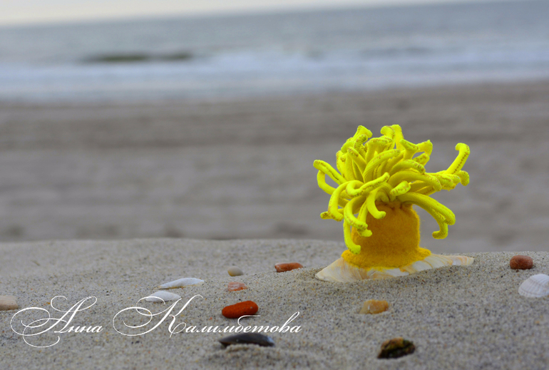 Весь морской транспорт и имеющихся фетровых морских обитателей я тоже помнится выкладывала. Здесь покажу новинки - актинии на ракушке. Идея, на мой взгляд, очень смелая и необычная. Дело в том, что Ясна безумно любит мультфильм "В поисках Немо" и книжку "Тюлька - маленькая рыбка и большая выдумщица". Мы постоянно разыгрываем океан в тазике, так что нам они оказались очень кстати!