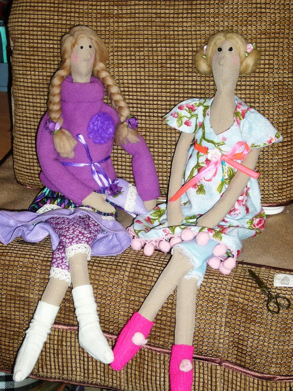 Может мои девочки кому-нибудь приглянутся? Каких-то конкретных желаний нет,поменяю на то что понравится. Еще ,из нерукодельного ,нужны тканьки в мелкий рисунок,кукольные кудряшки в форме жгутиков которые по 1,5 метра,еще нравятся книги по шитью тильд и про шитье из фетра или что-нибудь еще))).Еще ,нужна мягкая папочка для детских рисунков на кольцах.
