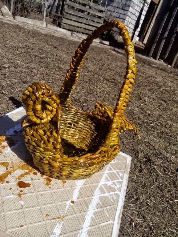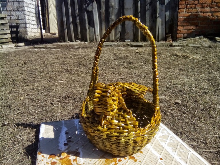 Сплелась вот такая корзинка "Пасхальная курочка" (плела такую первый раз). Сегодня отнесли.