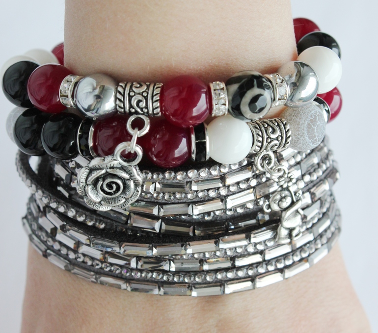 4)агат, гематит, рондели со стразами и фурнитура под серебро.