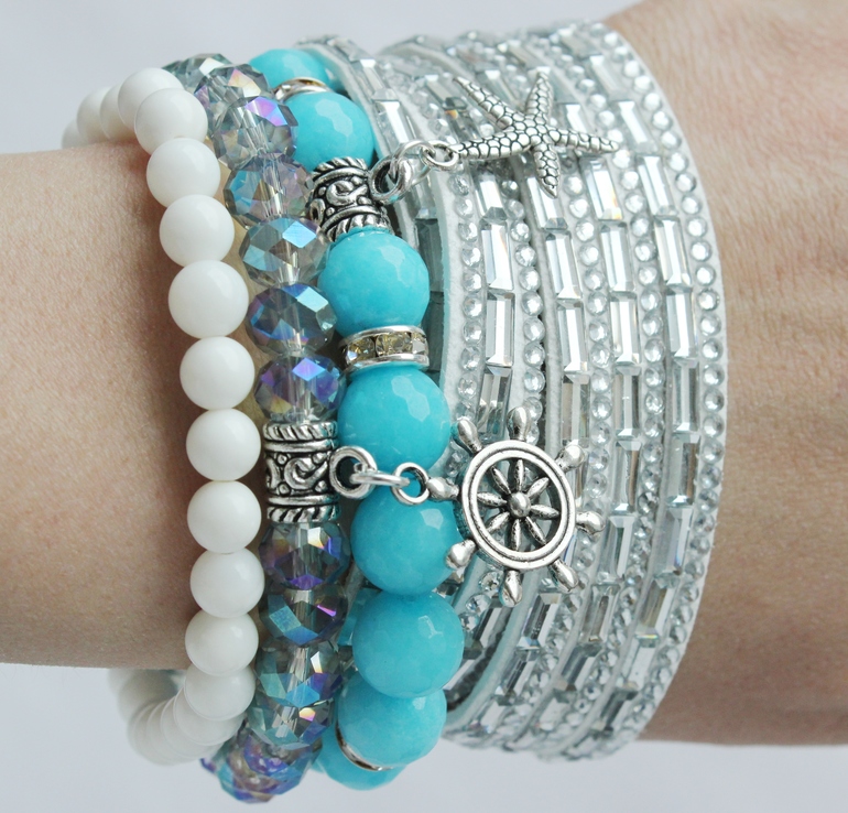 3)агат, гематит, муранское стекло, рондели со стразами и фурнитура под серебро.