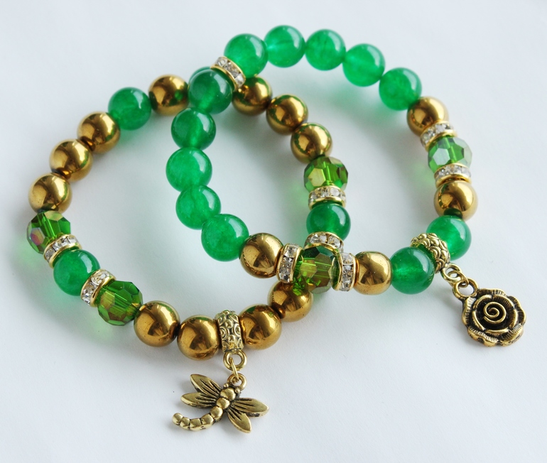 6) агат, гематит, варисцит, рондели со стразами и фурнитура под золото.