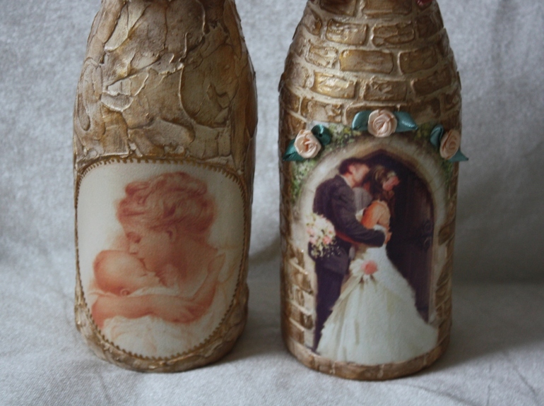Очень красивые и уютные бутылочки! Катюша, как ты эти кирпичика делала?