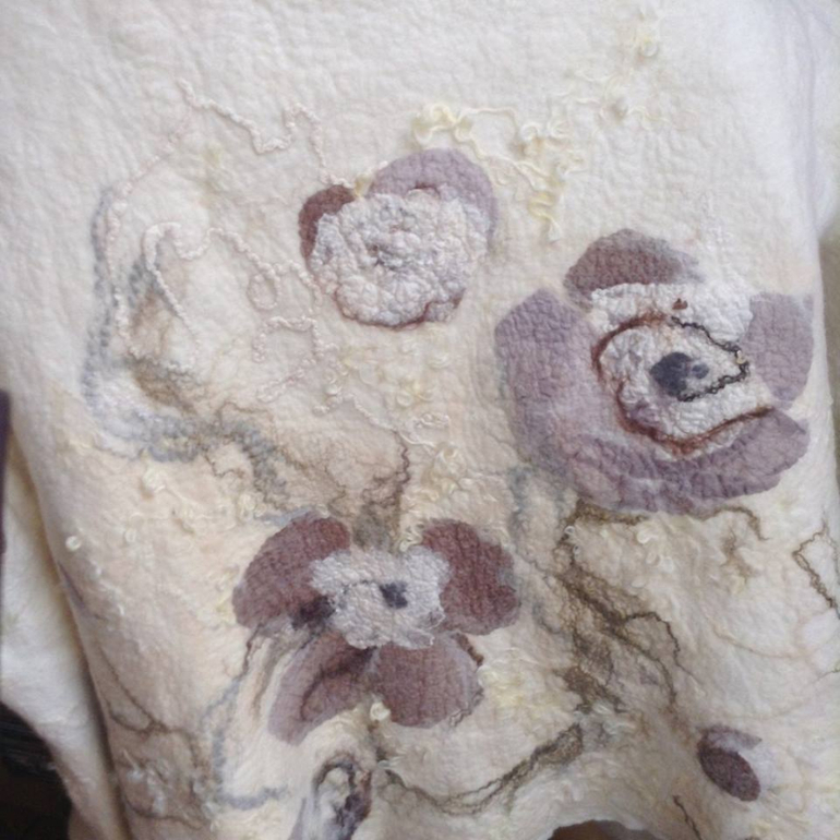 100 % шерсть, подкладка шелк. Декор - шелк, лен, вискоза, кудри.