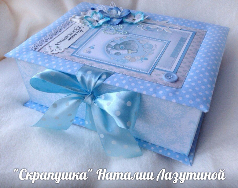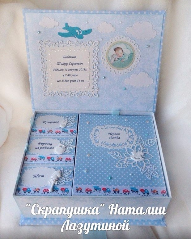 СкрапбукингКоробочки для хранения "Маминых сокровищ", у каждой мамочки они свои))) Тест, бирочка из роддома, первый локон, первый выпавший зубик, первая одежка, все эти вещи очень ценны и в такой коробочке они уж точно не затеряются.