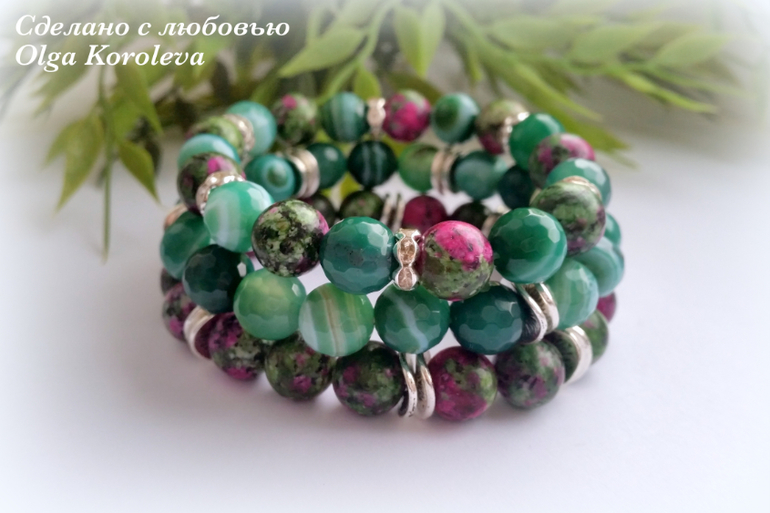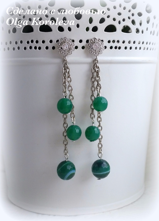 Бижутерия для слингомам. Слингобусы. Грызунки.Весенний комплект из серег и браслетов цвета сочной травы! Серьги с фианитами из латуни с родиевым покрытием (драгоценный металл), гвоздик из серебра. Браслеты на резинке из зеленого агата с огранкой и циозита.