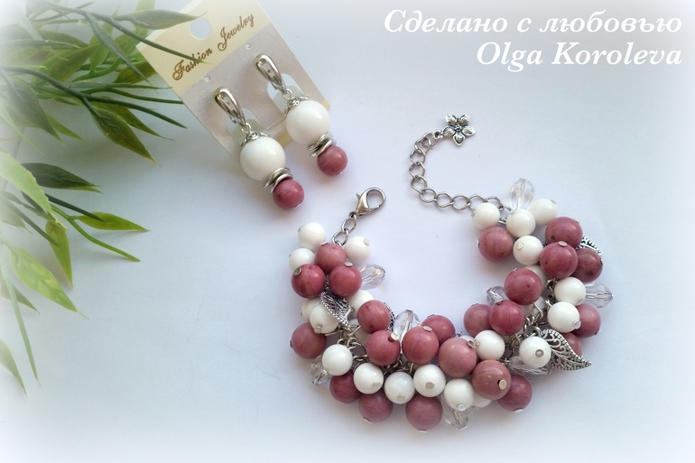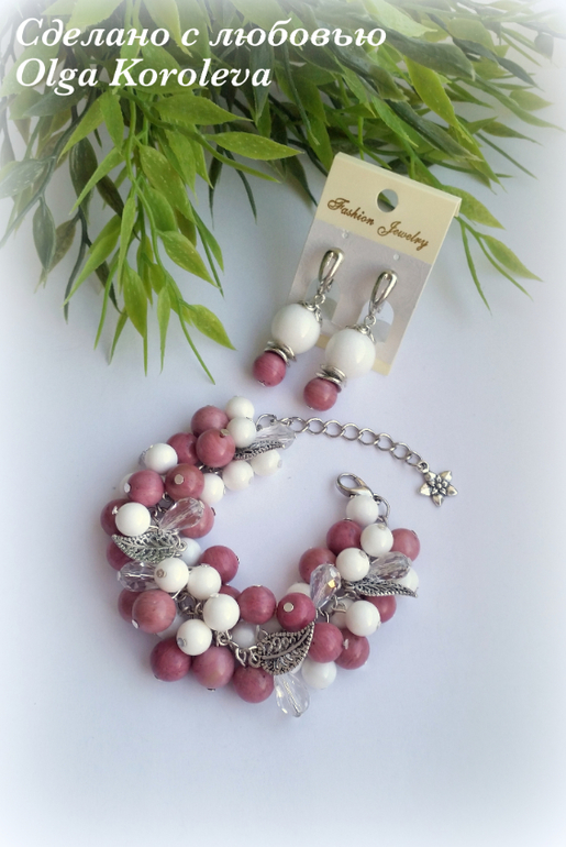 Бижутерия для слингомам. Слингобусы. Грызунки.Комплект под свадебное платье из нежного кружева с широким поясом и цветком пудрово-розового цвета. По цвету идеально подошел розовый родонит - в него я влюбилась и набрала в 2 раза больше, чем надо=) Буду еще в сочетании с жемчугом делать, должно быть здорово! Серьги на основах из мельхиора с посеребрением, застежка "английский замок". Надеюсь летом получу фото невесты в украшениях - так волнительно творить для особого случая!