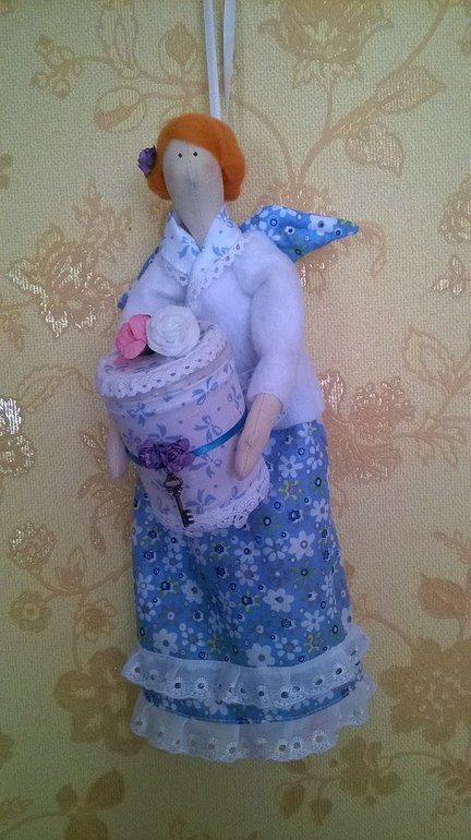 Эта дамочка, была сшита на день рождение сестренке, надеюсь ей она придется по душе))) Думаю это не последняя хранительница дамских принадлежностей))