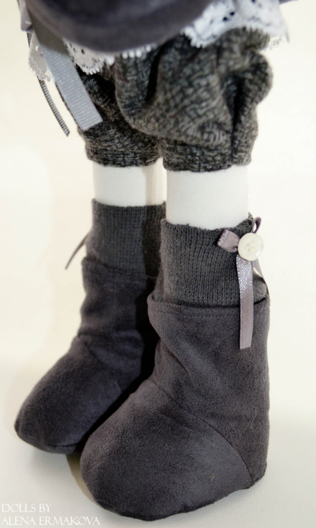Выполнена на заказ! Рост девочки 43 см. Волосы-натуральные овечьи кудряшки) Сумочка и ботиночки сшиты из замши.