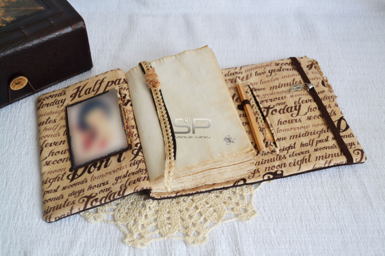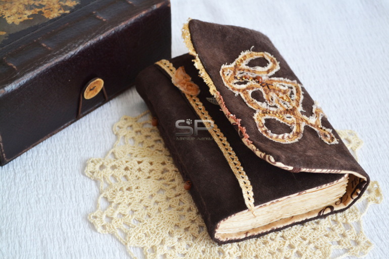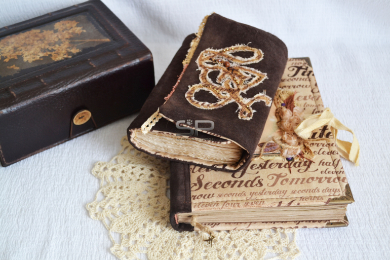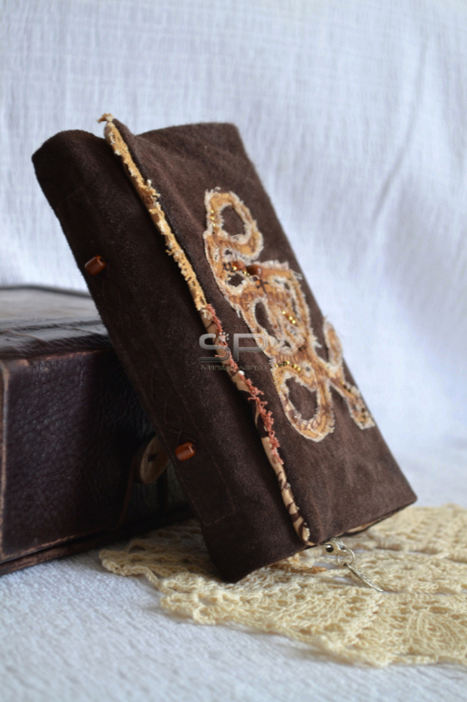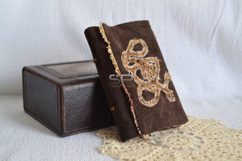 СкрапбукингВторой замшевый софтбук, фантазийный)) На обложке монограмма, инициалы будущей хозяйки, внутри ее фото. 240 чайных страничек, ароматизирован кофе)) Вышивка бисером, бусинами. #многофото