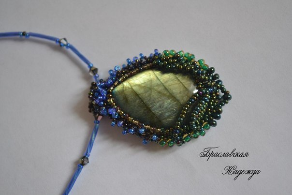 Бижутерия для слингомам. Слингобусы. Грызунки.Один из моих любимых камней спектролит в окружении японского бисера Тохо. Когда делала этот кулончик, представляла бутон таинственного цветка, который вот-вот раскроется. Может, это и есть цветок папоротника?