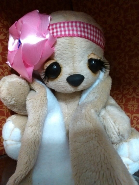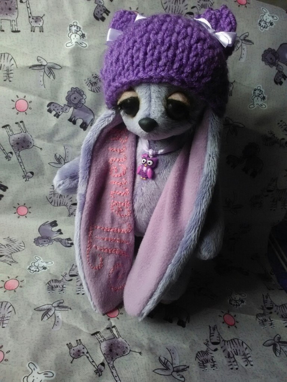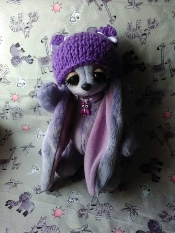 А вот эта малышка появилась последняя)))Погодка нас не радует, дожди,дожди, солнышка не видать(((А фотографии на память хотелось сделать))) Она ооочень торопилась к своей хозяйке, сроки поджимали, было всего около двух дней времени!!! Но я к своему счастью успела и она уже в пути в другой город к своей хозяюшке))) Эта зайка именная на ушке у нее вышито имя ребеночка - Таисия)))