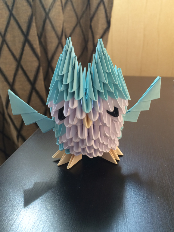 вот такой у нас вышел совенок))) дети резали бумагу и пытались сворачивать модули)