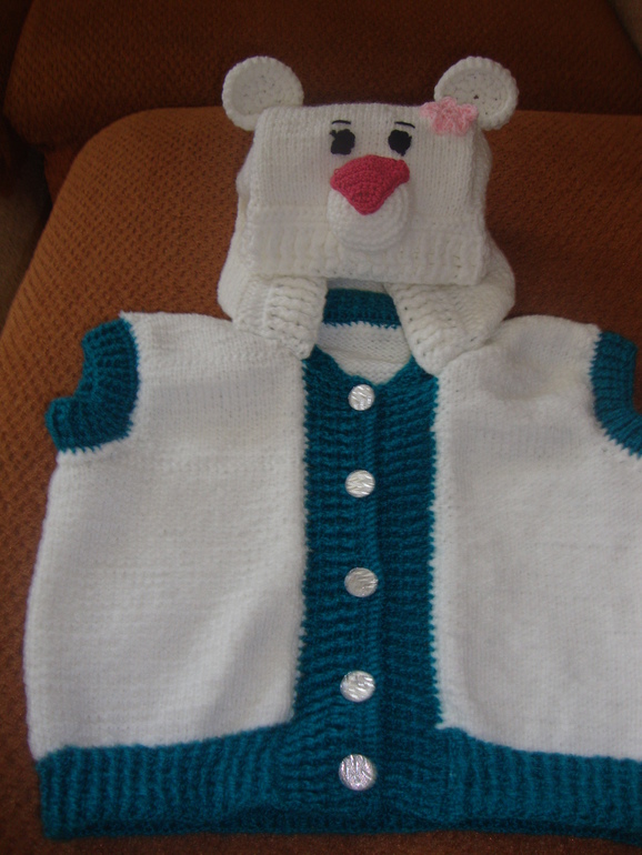 хорошая жилеточка, особенно капюшон. Только пройма рукава глаз режет, я бы её поглубже сделала (раньше начала бы ее делать). А то как то не пропорционально смотрится.