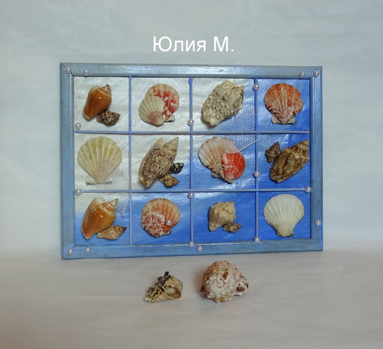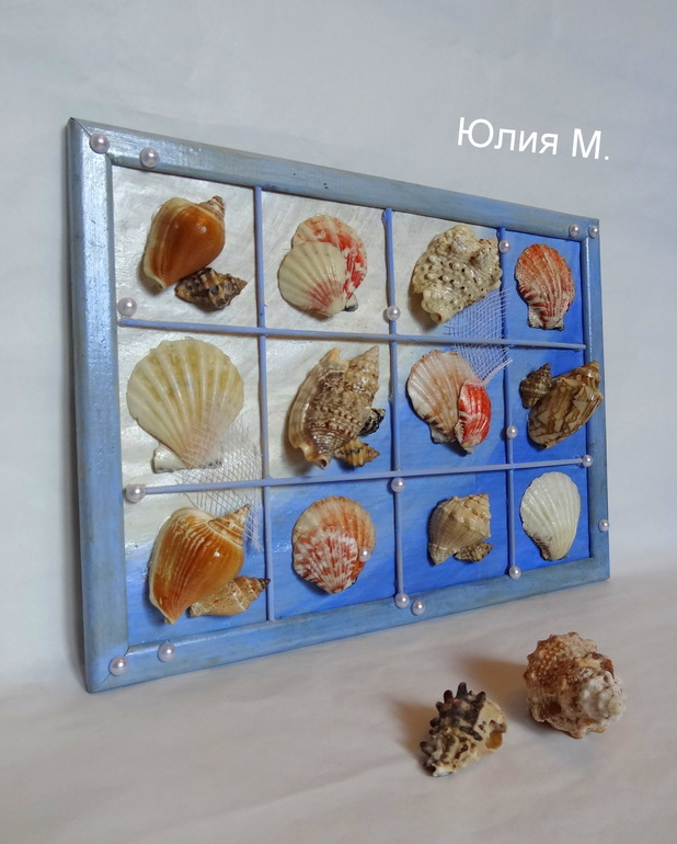 Ракушки дождались своего часа))) Фон акриловая краска, затем лак. размер 32*23 см.