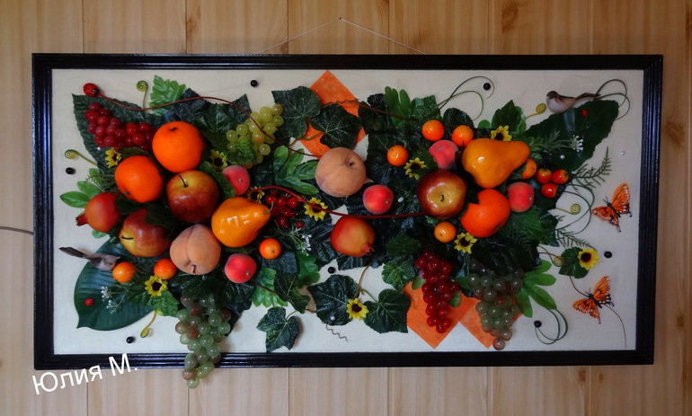 Панно с фруктами уже видела вконтакте. Круто! Я в восторге! Юля, а основа из чего? Или это заготовка холст? А в морском стиле какой же красавец! Ты где таких ракушек набрала? Супер супер!!!