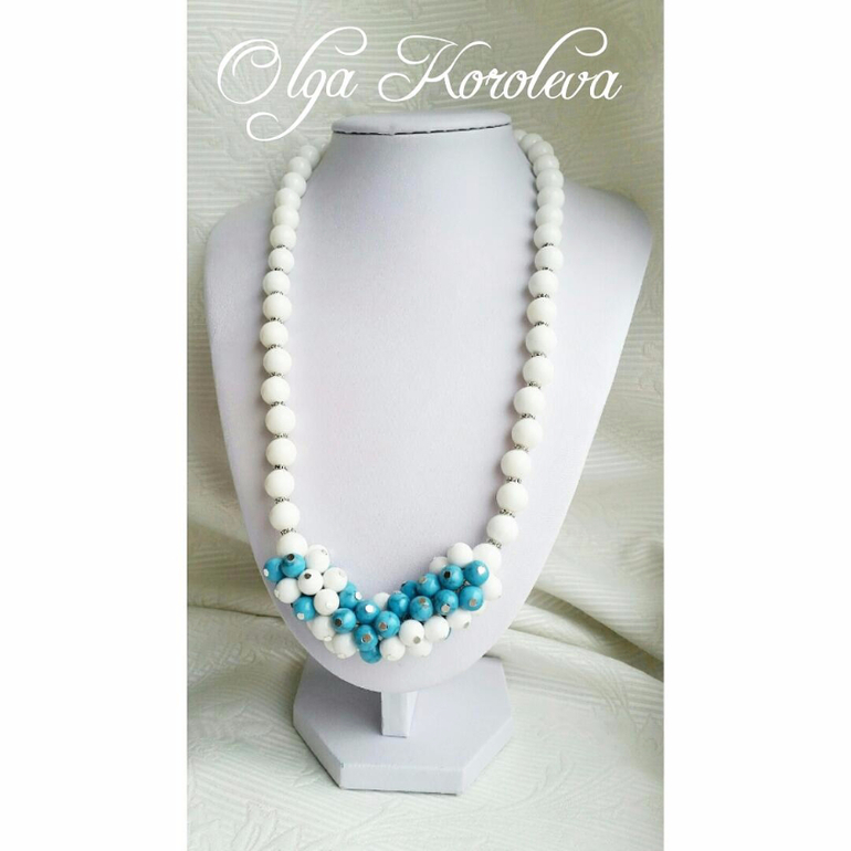 Бижутерия для слингомам. Слингобусы. Грызунки.Давняя задумка наконец-то воплотилась! Колье из шикарного белого агата с полупрозрачными прожилками, белого агата и бирюзового кахолонга под бирюзу.