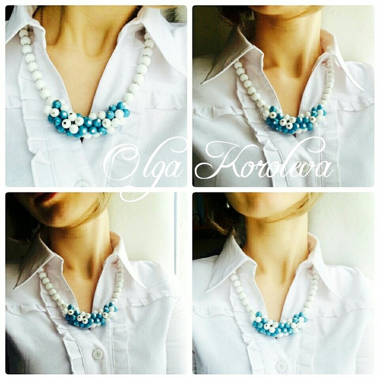 Колье из белого агата и бирюзового кахолонга