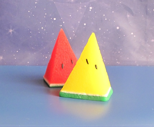 зеленый, который! Ну прямо бери и кушай! Даже запах как будто чувствуется... А в арбузе — даже семечки есть. Класс
