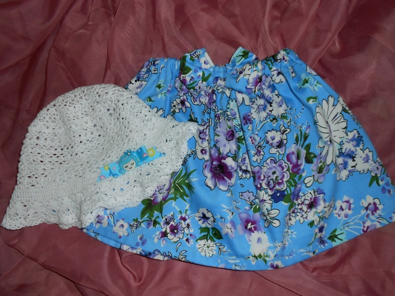 Из остатка ткани вот такая юбочка с бантом и к ней панамка