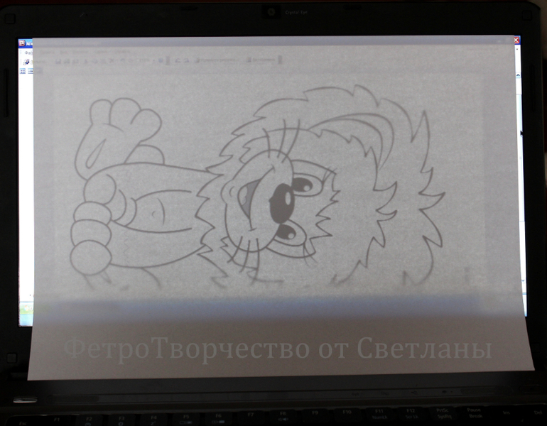 2 вариант . Это накладываем лист бумаги на монитор и переводим каждую часть отдельной деталью. К примеру : перевели тело львенка -затем сдвинули лист бумаги на свободное поле и перевели гриву - затем снова сдвинули на свободное место листа и перевели др. часть и т.д. Незабываем припуски , если такие имеются.