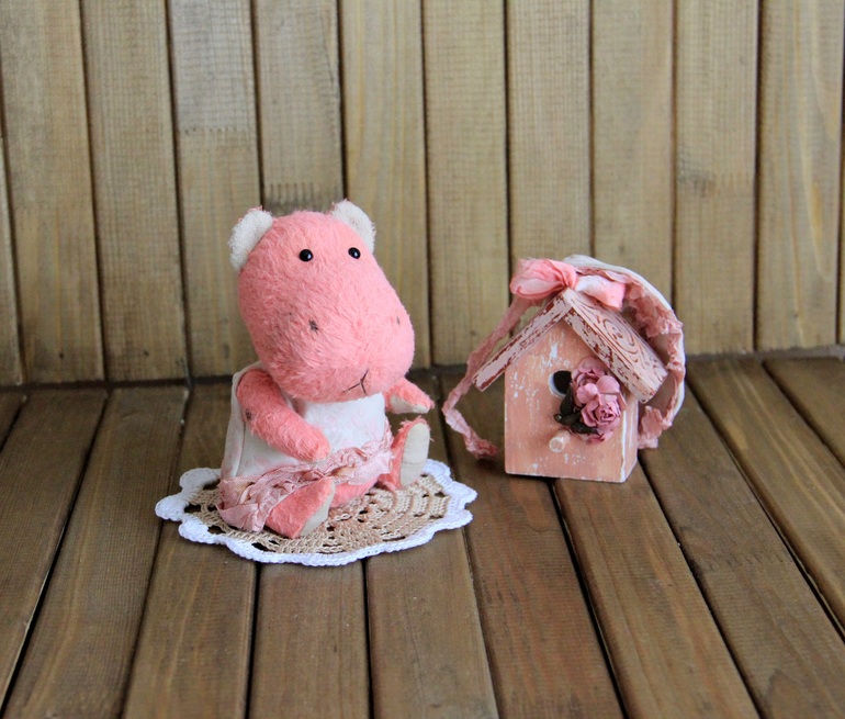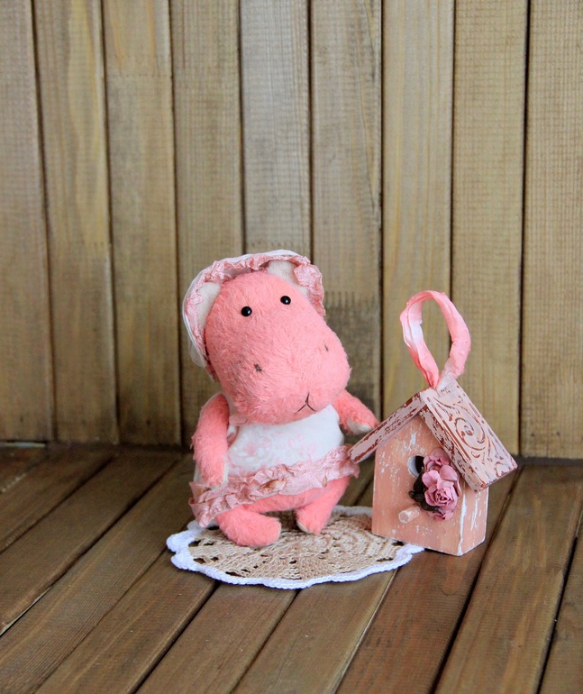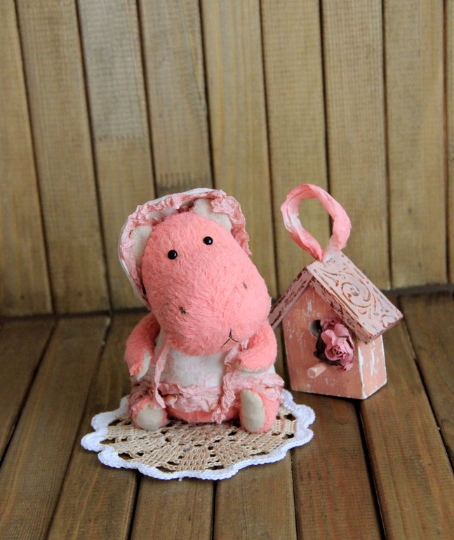 Тедди: мишки и их друзья.Фрекен Анника - бегемоша-малышка, умещается в ладошке. Хотелось сшить девочку в рюшах и шляпке, а получилась лялька в распашонке и чепчике))