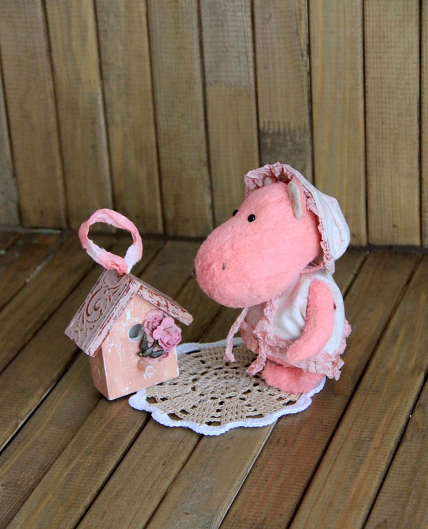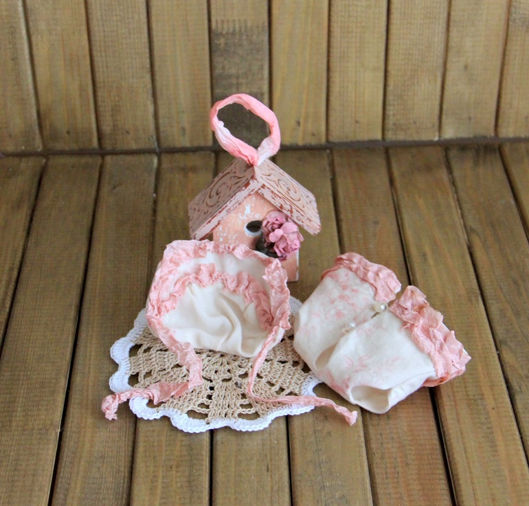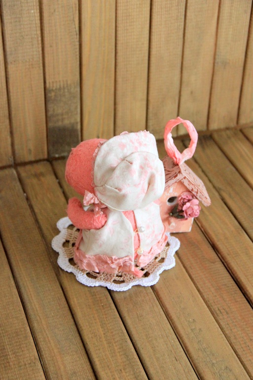 У Анники есть любимый скворечник - старенький, потертый, когда-то он был розовым. Ростиком лялька 13 см, сидя 11 см. Стоит с опорой.