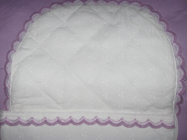 А как будете прорези для ремней автокресла прострачивать? Судя по всему уже без "крышечек"