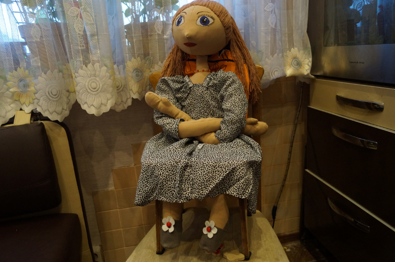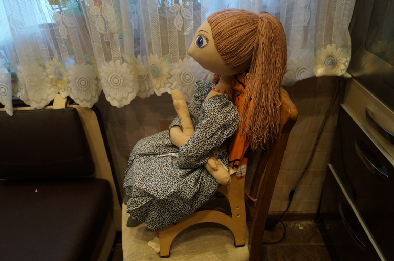 Ещё попросили сшить куклу на стул "Мамина Любовь" , что бы детишки могли сесть и обнимать себя её руками.
