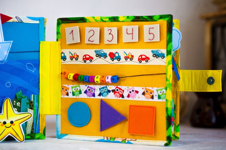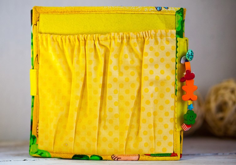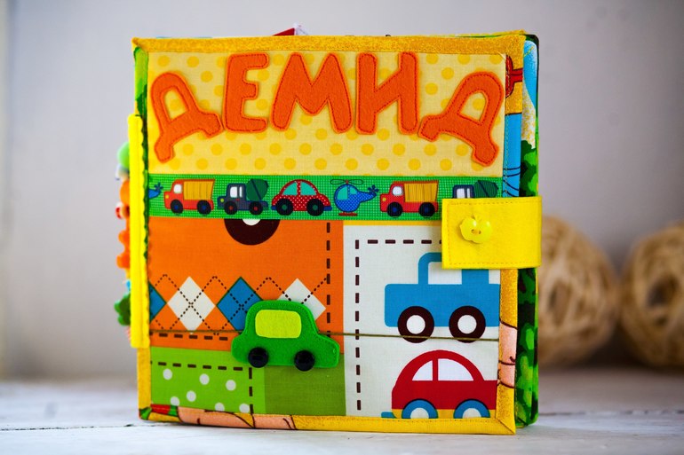 Размер 20*20 см. Книжка застегивается на магнитную кнопку. Машинка катается по шнуру.
