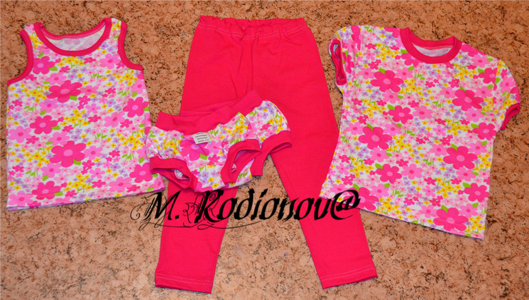 Костюм для мамы состоит из футболки, трусов и длинных лосин. В костюм для дочки входит - футболка, майка, трусы-хипстеры и длинные лосины. Сшиты в розово-малиновой гамме из х/б кулирки и кулирки с лайкрой (лосины). Больше фото под катом.